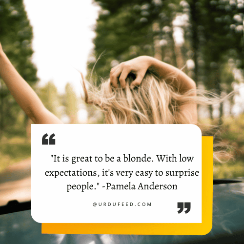 - “It’s great to be a blonde. With low expectations it’s very easy to surprise people.” ― Pamela Anderson