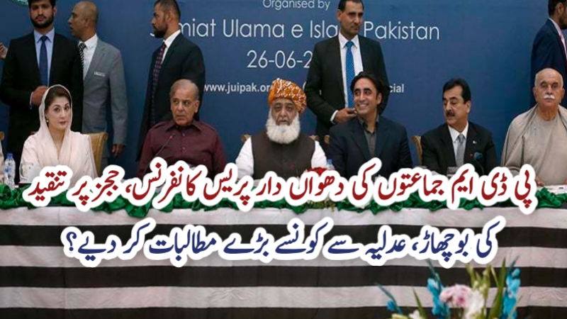 پی ڈی ایم جماعتوں کی دھواں دار پریس کانفرنس، ججز پر تنقید کی بوچھاڑ، عدلیہ سے کونسے بڑے مطالبات کر دیے؟